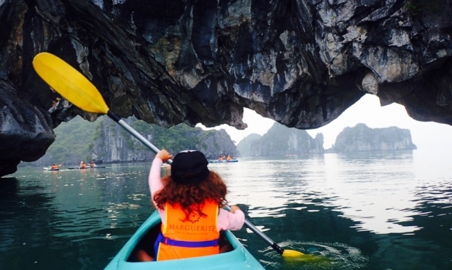 08:00: Sau bữa sáng du thuyền sẽ đưa Quý khách thăm quan khu vực hang Sáng & Tối một trong những nơi có cảnh đẹp hoang sơ nhất ở vịnh Lan Hạ, vịnh Hạ Long, quý khách có thể lựa chọn tự mình chèo thuyền kayak hoặc ngồi trên thuyền nan do người dân địa phương chèo, thăm và khám phá vẻ đẹp nơi đây.